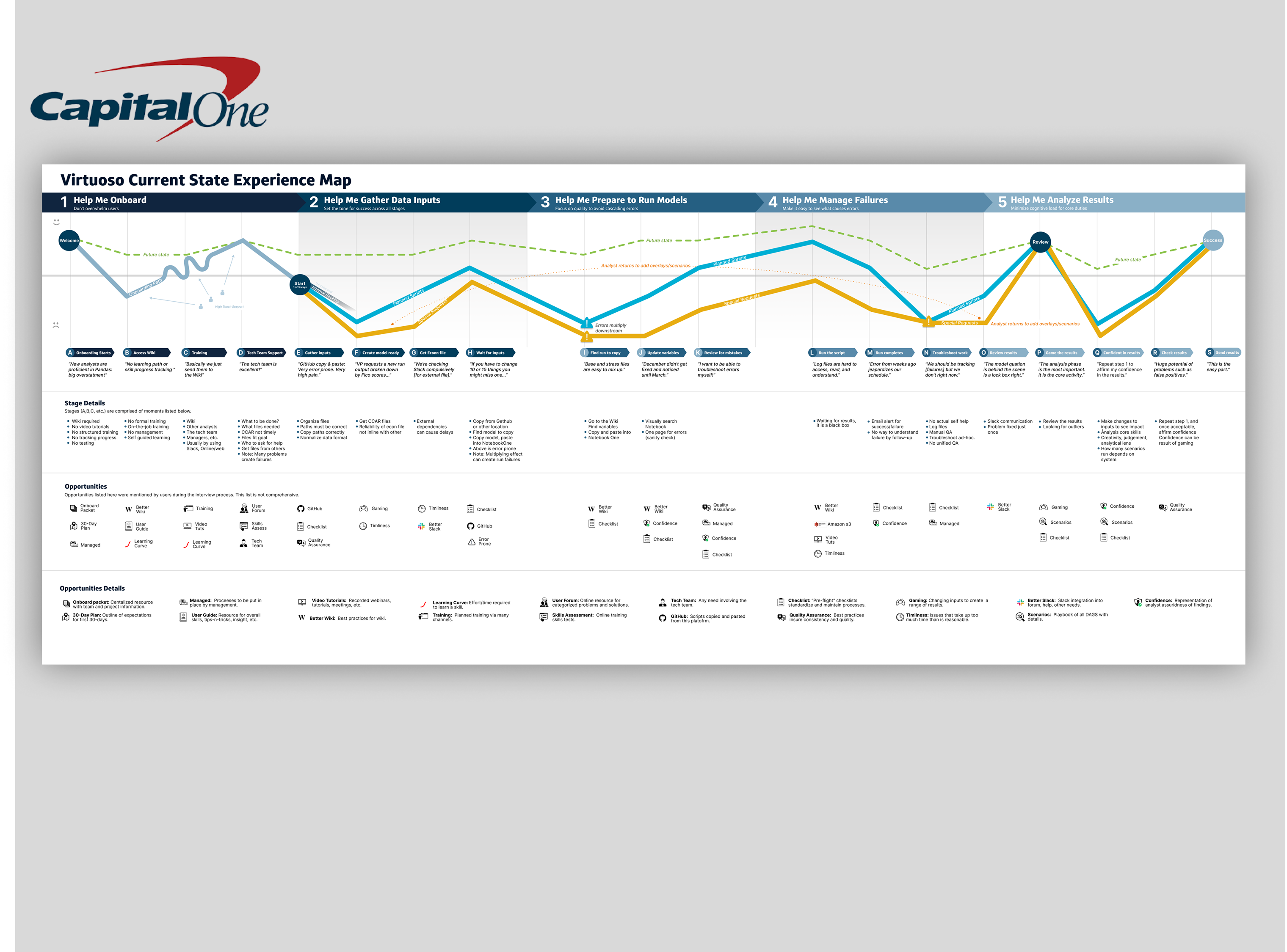 Conducted in-depth interviews with analysts and stakeholders. Mapped workflows end-to-end across systems, people, and channels. Created a comprehensive journey map and service blueprint to uncover gaps and reveal opportunities.